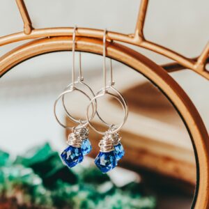 Blue Quartz Drop Sterling Silver Circle Threader Earrings by Kari Asbury Jewelry