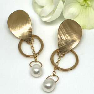 Brushed Gold and Pearl Earrings by Bella Rose Jewelry Design