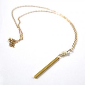 The connection of the vertical gold bar represents the line we seek to define ourselves. The pearls add to our deep longing to feel complete with one’s spiritual self and physical body. When united together these act as a channel to complete our destination of one’s journey of the soul.”