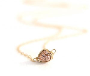 This minimalist choker features a sparkling rose gold trillion shaped druzy that is wire-wrapped and paired with your choice of sterling silver, 14K gold-filled or 14K rose gold-filled chain. The simplicity and timeless feel of this piece makes it super-easy to accessorize. Perfect for everyday wear or for that special occasion.