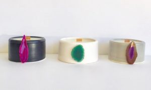 Hand-Thrown Ceramic Artisan Candles with Agate Crystal by Chantry 1975